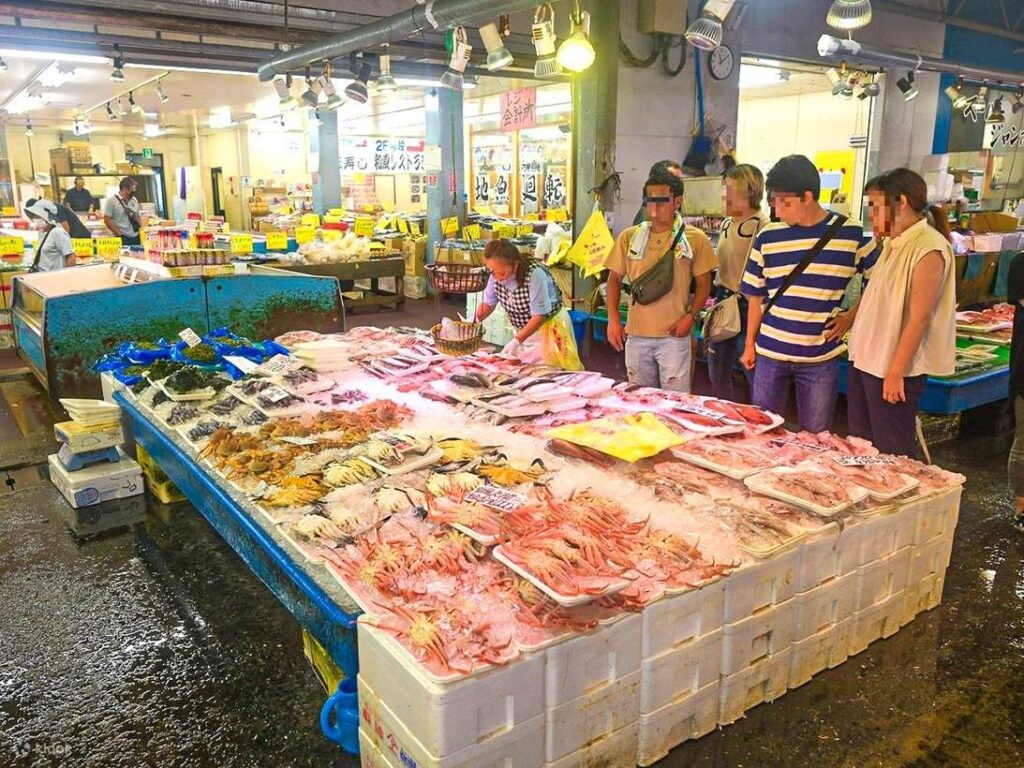 市場の活気を感じながら食べる海鮮は格別です。